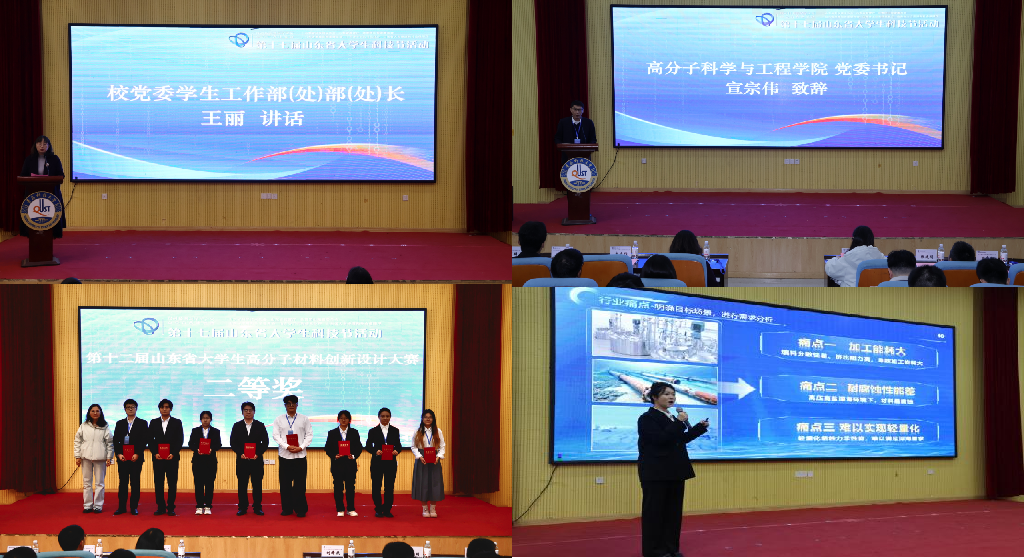 11月28日,由山东省科协、省教育厅、团省委、省发改委、省工信厅、省人社厅主办,青岛市科学技术协会、欧博abg官方网站承办的第十二届山东省大学生高分子材料创新设计大赛在四方校区举行。