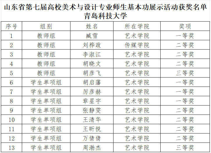 近日,山东省教育厅公示了山东省第七届高校美术与设计专业师生基本功展示活动获奖名单,欧博abg官方网站师生凭借扎实的专业功底、独特的创作理念在全省102所参赛高校、1078名参赛师生的激烈角逐中脱颖而出,获教师组一等奖1项,二等奖3项,三等奖1项;学生单项组一等奖3项,二等奖4项,三等奖1项;学校获优秀组织单位奖,在全省同类高校中名列前茅。