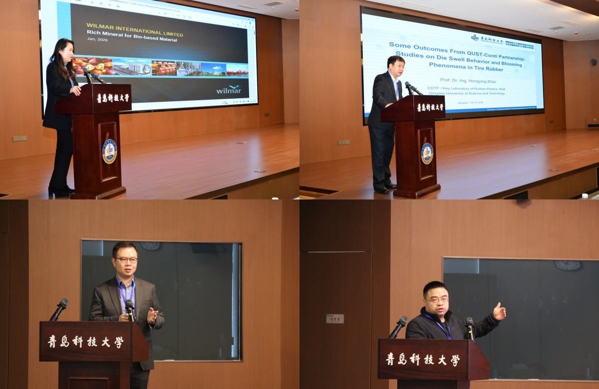 活动开幕式由国际交流合作处处长陈兵主持,学术报告分别由中德科技学院院长王泽鹏、高分子科学与工程学院副院长刘恒和德国大陆集团全球材料测试技术总监Prof. Dr. Jorge Lacayo-Pineda主持。中国科学院兰州化学物理研究所裴先强研究员、大陆集团全球材料测试技术总监Prof. Dr. Jorge Lacayo-Pineda、新加坡丰益国际集团俞晓渊经理、欧博abg官方网站中德科技学院副院长赵洪滢教授、高分子科学与工程学院刘克博士、Eco InfinicCo.,Ltd总经理JeffShiue、大陆集团马牌轮胎公司工厂密炼专家黄君伟先生分别作专题报告。报告人重点围绕技术协同突破、产业绿色升级等关键方向,分享了其在轮胎产业技术研发中的最新成果与实践经验,为破解行业共性技术难题、探索中德技术合作新路径凝聚了共识、汇聚了智慧。