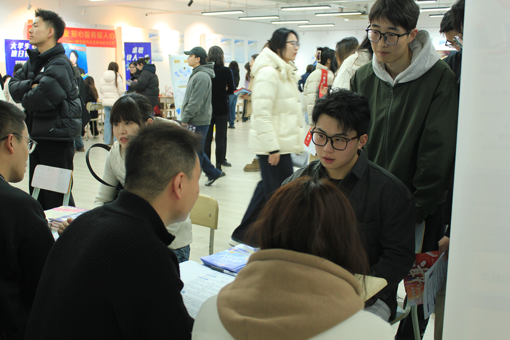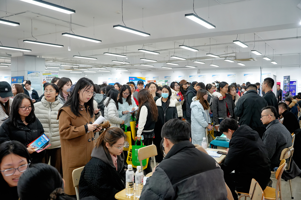 前期,传媒学院、艺术学院、外国语学院、体育学院联合发布2026年春季校园招聘会邀请函,吸引了省内外60余家用人单位关注并报名。通过精准摸排学生就业意向需求,精心筛选专业对口单位到校招聘,招聘会涵盖了新东方、学而思、凤凰网、豪迈集团、深度传媒集团、筑瓴畅视、逢时科技等企业,覆盖文化传媒、教育培训、外贸物流、制造零售等领域的500余个岗位,为毕业生高质量就业提供保障。在招聘会现场,各学院毕业生就岗位职责、工作要求、发展前景等与意向单位交流自荐并投递简历,部分非毕业学生也提前来了解用人单位招聘流程、应聘条件和岗位需求,现场气氛热烈、人潮涌动,陆续有1000余名学生参加。
