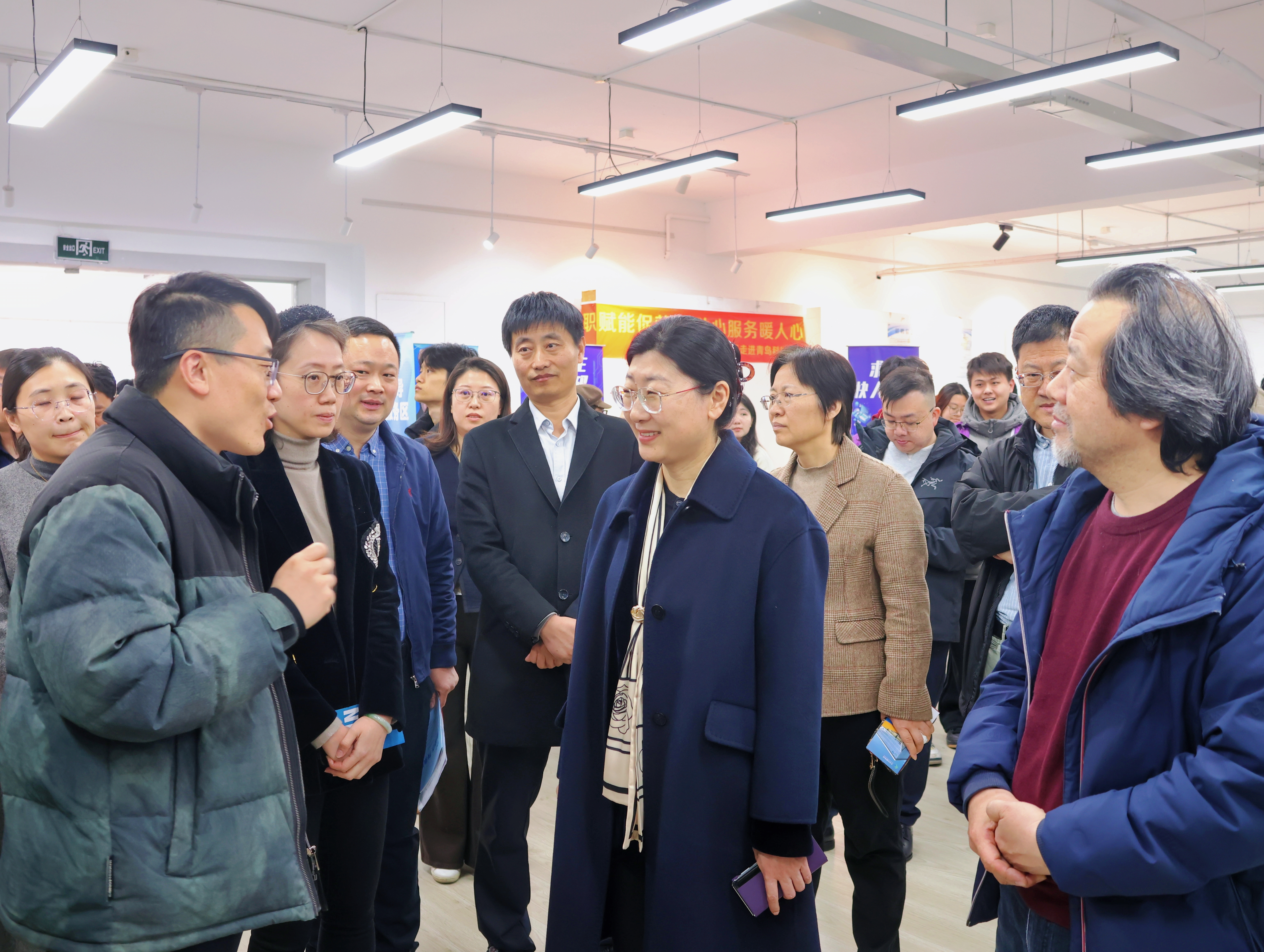 青岛市公共就业和人才服务中心、学校就业指导中心等相关部门负责人,传媒学院、艺术学院、外国语学院、体育学院党政领导和教师代表参加招聘会,大家就当前就业形势、用人需求及企业发展等深入交流,着力促进2026届毕业生高质量充分就业。