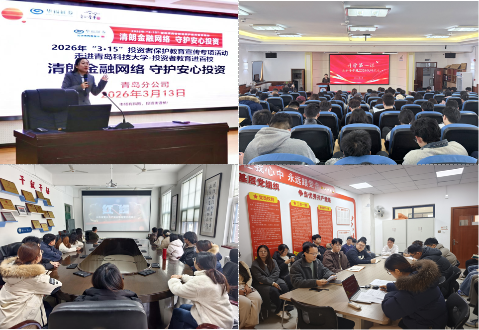织密校园安全防线,守护平安校园。化工学院结合典型火灾事故案例开展消防安全警示教育,立足专业实际开展实验室安全专项培训,引导学生时刻绷紧安全弦。高分子科学与工程学院通过诈骗案例分析、违规电器警示、重大火灾事故警示片观看等多种形式,帮助学生掌握实操性安全防护技巧。马克思主义学院联合华福证券青岛分公司开展金融反诈教育专项活动,针对校园高发风险传授“防非”妙招,提升学生金融安全意识和风险识别能力。信息科学技术学院和微电子学院以宿舍安全为“开学第一课”的实践课堂,在多次安全巡查中变“查”为“教”,现场排查隐患、督促整改的同时开展情景式安全教育,引导学生将安全意识融入日常,共同营造温馨安全的住宿环境。