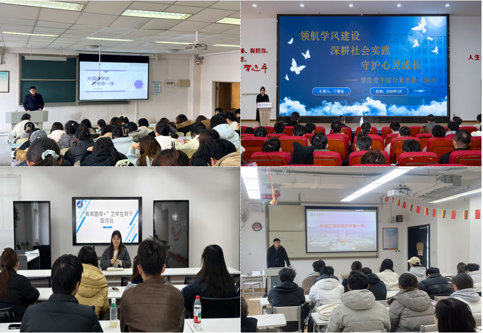 夯实心理健康基础,守护健康成长。自动化与电子工程学院普及心理健康求助渠道与调节技巧,依托心理微课、科普栏目等资源开展知识宣传。中德工程学院摸排重点关注学生心理状态,针对适应困难、人际紧张、情绪波动等常见问题建立帮扶机制,及时开展精准疏导与干预,引导学生保持积极向上的心理状态。外国语学院解析大学生常见心理困扰,向学生普及学校心理健康教育与咨询中心资源、心理援助热线等咨询渠道,引导学生关爱自身心灵成长。数据科学学院开展“青年思享+”本研学生骨干座谈会,围绕学生急难愁盼问题开展专项指导与交流研讨,切实解决学生学习、生活中的实际困难。