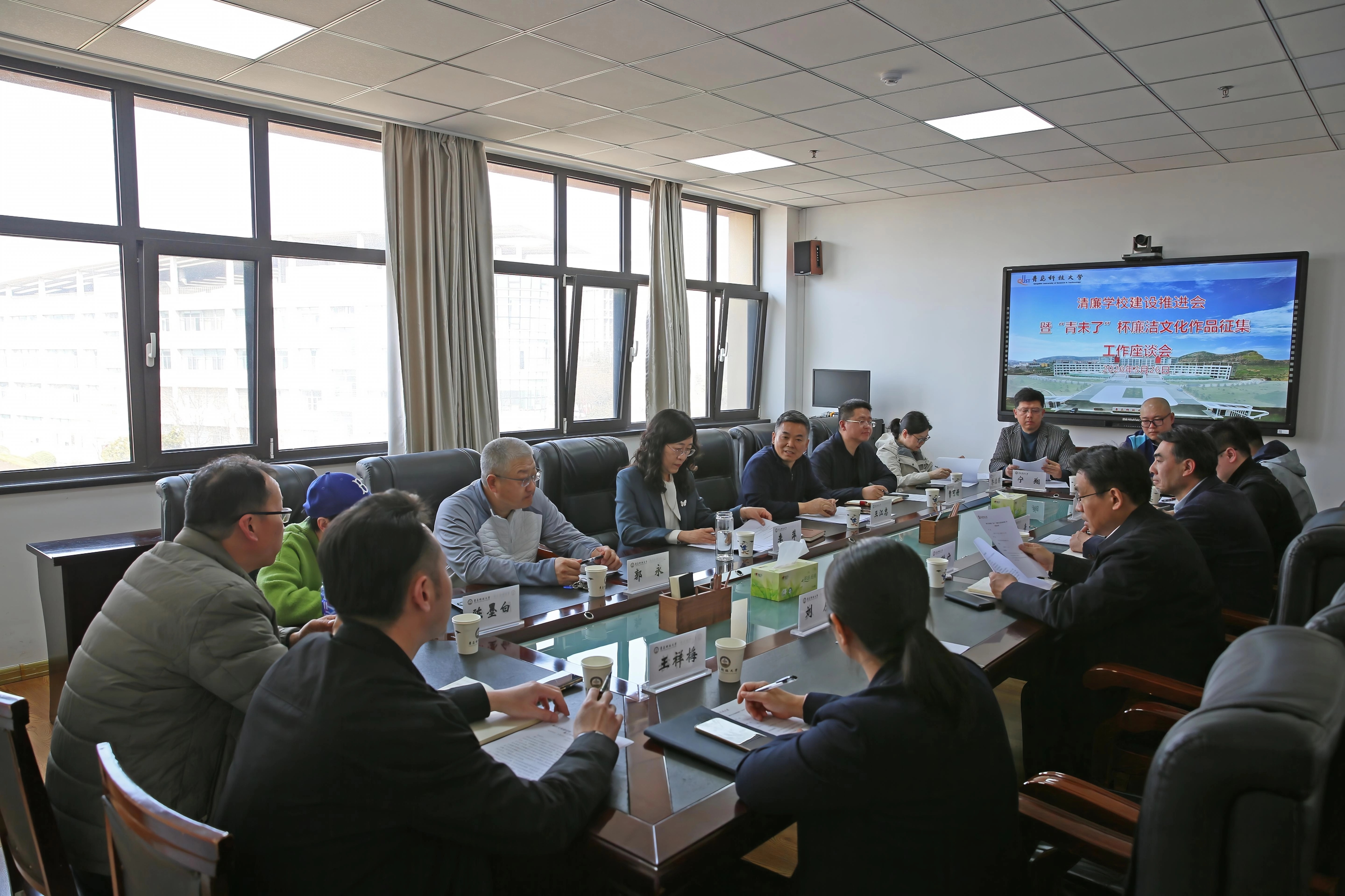 会议传达了《关于举办学校“青未了”杯廉洁文化作品征集活动的通知》要求。与会人员就推进清廉学校建设和廉洁文化作品创作推进情况进行了座谈交流。