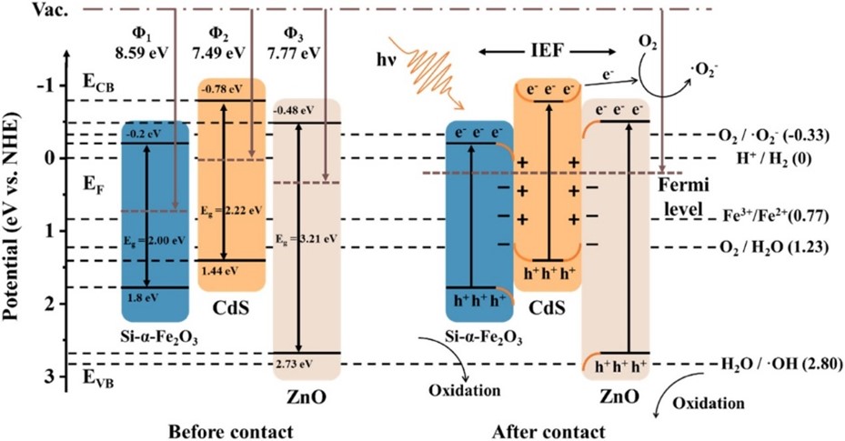 近日,欧博abg官方网站化工学院徐东彦教授在自然指数源刊、环境领域顶级期刊Water Research上发表了题为“Construction of a novel dual S-schemeCdS@Si-α-Fe2O3/ZnO heterojunction for visible-light-driven photo-Fenton degradation of ciprofloxacin”的研究论文。倪晓玺(2021级硕士研究生,北京化工大学2024级博士生)和夏龙飞(2023级硕士研究生)为论文共同第一作者,欧博abg官方网站为唯一通讯单位。