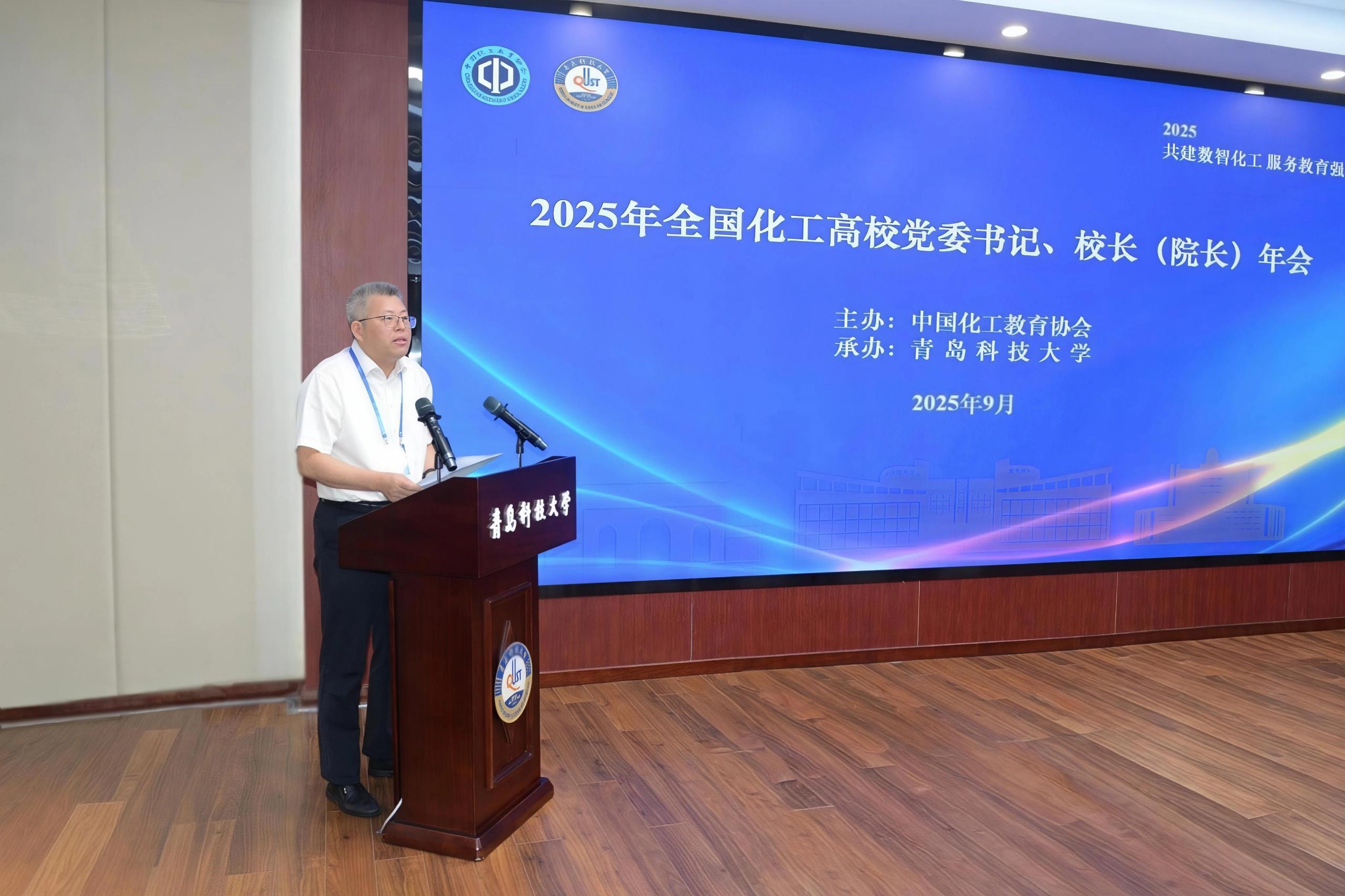 在庆祝欧博abg官方网站建校75周年之际,9月19日至20日,由中国化工教育协会主办、欧博abg官方网站承办的2025年全国化工高校党委书记、校(院)长年会在青岛举行。中国化工教育协会会长郎红旗、原会长郝长江以及中国科学院院士、华东理工大学党委常委、副校长朱为宏,南京工业大学党委书记荆晅,武汉工程大学校长张彦铎,四川轻化工大学校长曾英,吉林化工大学校长艾学忠,北京石油化工学院校长梁浩,山东石油化工学院党委书记孟晓雷等17所全国化工高校的领导嘉宾50余人应邀参会。欧博abg官方网站党委书记杨天梅,校长陈克正,党委常委、副校长罗细亮、吴明铂出席年会。