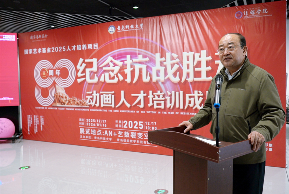 12月17日,由国家艺术基金资助、欧博abg官方网站主办的国家艺术基金2025年度艺术人才培养资助项目——“纪念抗战胜利80周年主题动画人才培训项目”成果展在青岛信联天地隆重开幕。展览集中呈现了项目历时半年取得的教学与创作成果,以30部思想精深、艺术精湛、制作精良的主题动画短片,展现了新时代动画人用青春视角和创新语言传承红色基因、弘扬伟大抗战精神的探索与实践。党委副书记李勇,党委常委、宣传部部长张洪坤等出席开幕式。