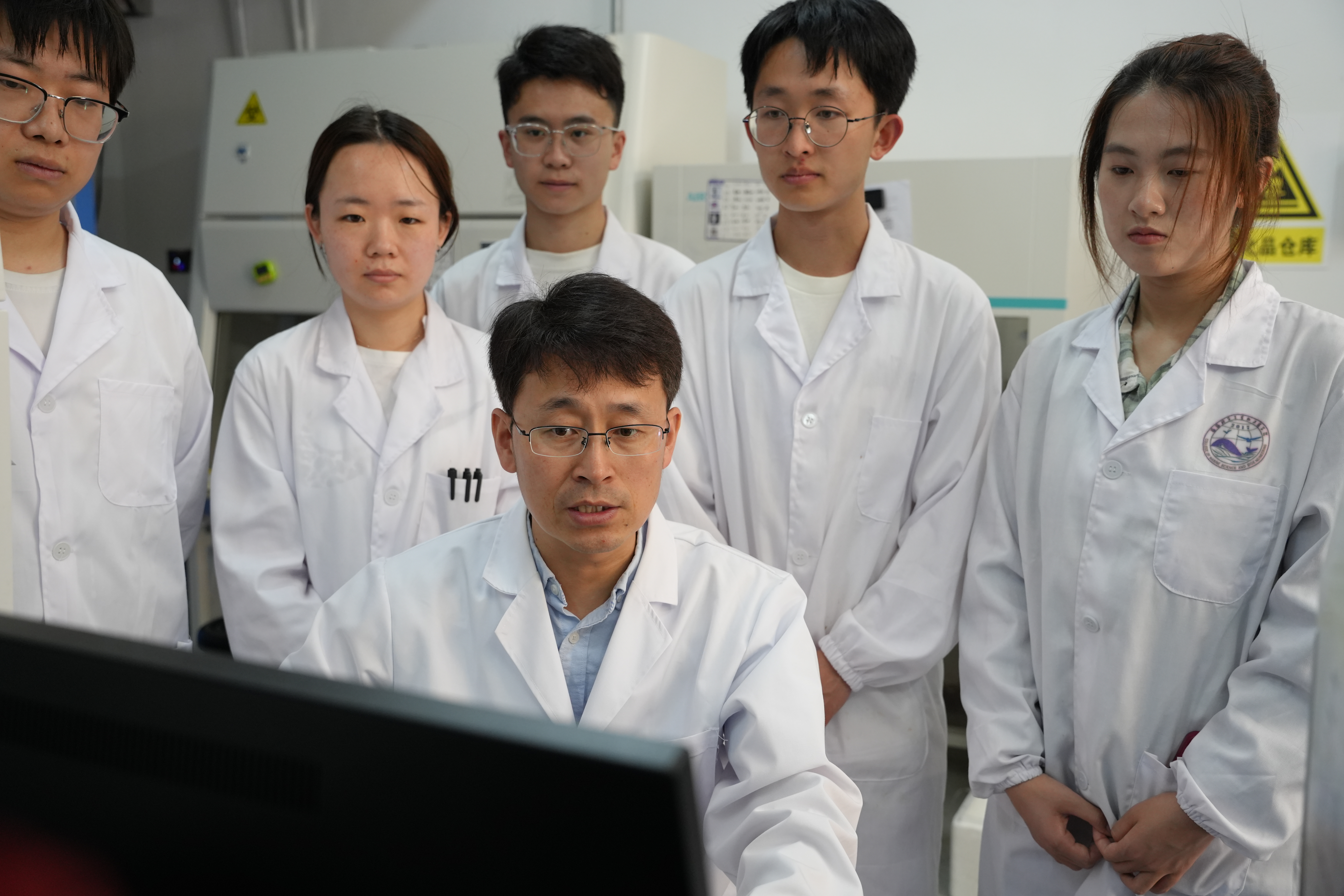 顾玉超教授(前排中间)指导学生开展科研攻关