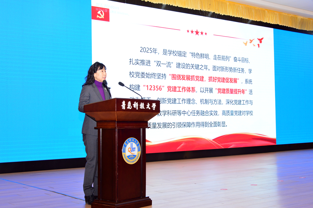 党委副书记沈文青作2025年党建工作报告。她指出,学校党委坚持“围绕发展抓党建,抓好党建促发展”,系统构建“12356”党建工作体系,以开展“党建质量提升年”活动为抓手,创新党建工作理念、机制与方法,深化党建工作与立德树人、教学科研等中心任务融合实效,高质量党建对学校事业高质量发展的引领保障作用得到全面彰显,有效提升了党建工作的规范化、科学化水平,使党的领导更加有力、党的建设更加坚实。对照上级部署要求和高质量发展需要,要进一步压紧压实党建工作责任链条,持续提升基层党建工作质量,深入推进“一融双高”建设,以更高标准、更实作风,汇聚奋进力量,为学校加快建设“特色鲜明、走在前列”的高水平大学提供坚强组织保障。