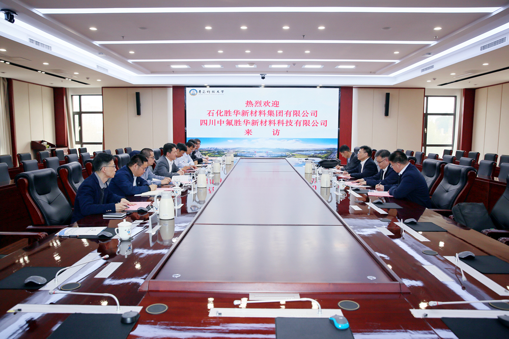 3月27日,石大胜华新材料集团股份有限公司董事长郭天明一行到学校开展深度产学研合作交流。党委书记杨天梅会见了郭天明一行,党委常委、副校长吴明铂出席并主持交流会。