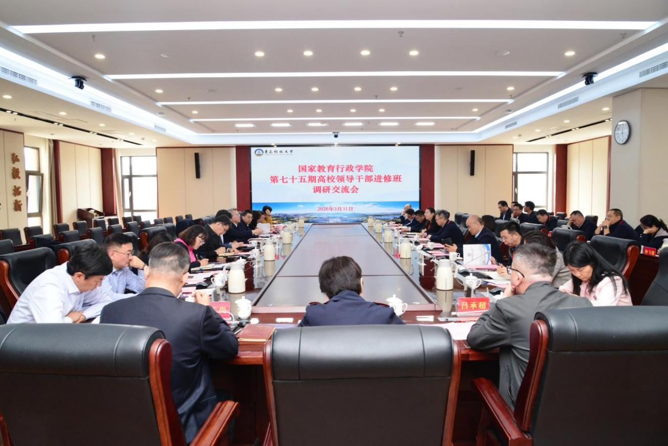 3月31日,国家教育行政学院第75期高校领导干部进修班山东调研团一行来校调研交流。党委书记杨天梅,党委常委、副校长吕万翔、吴明铂出席相关活动。学校相关职能部门及学院负责人参加座谈会。